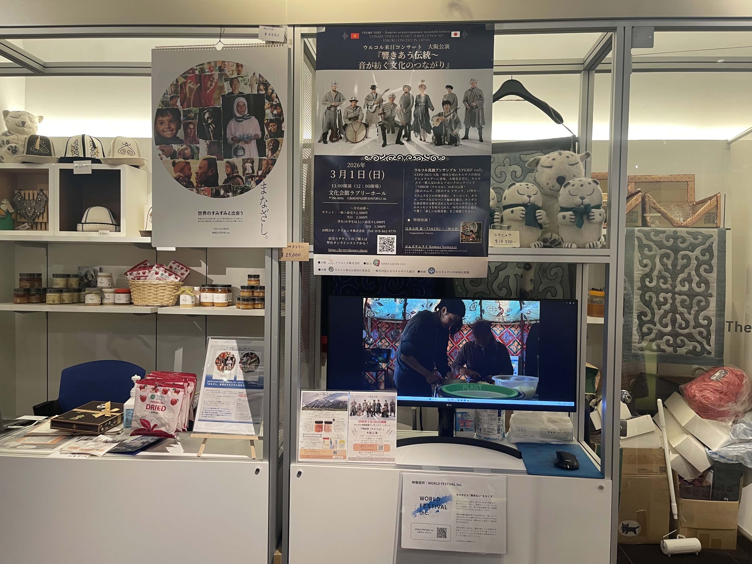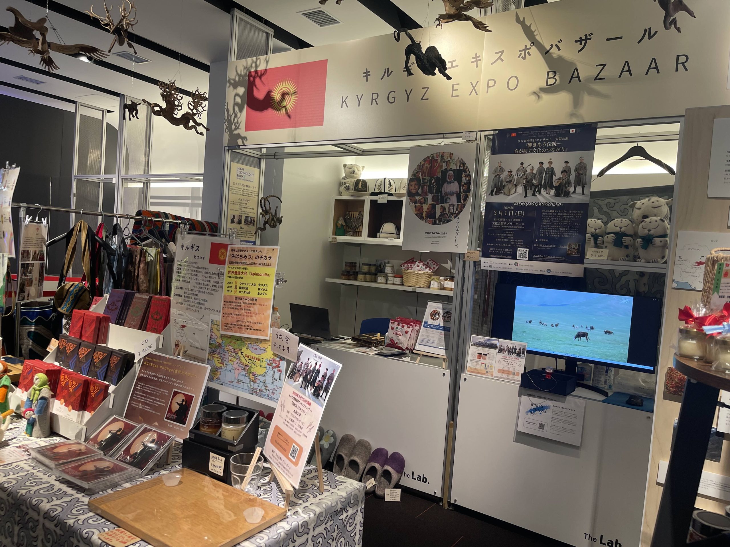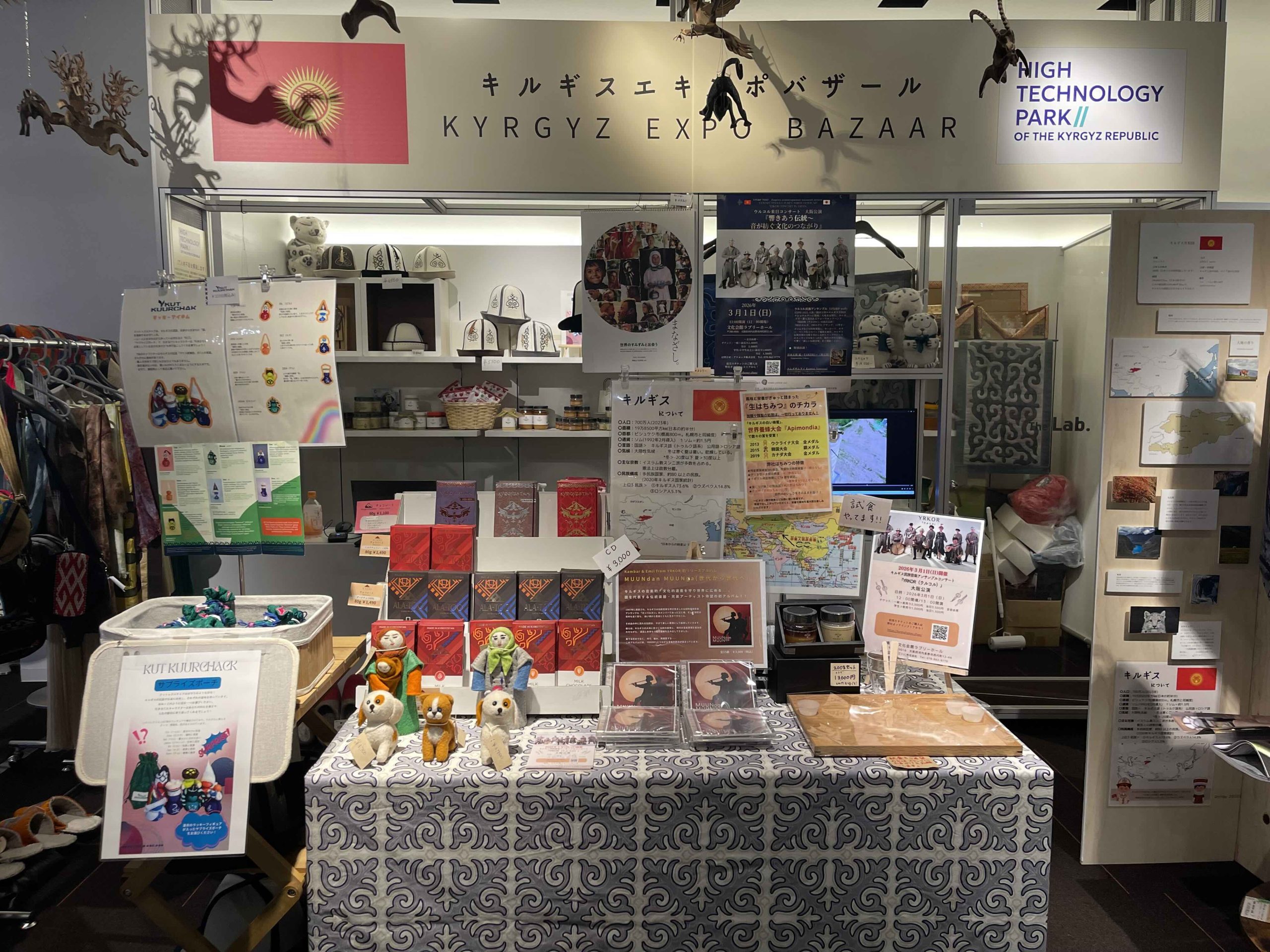 万博でのキルギスパビリオンにおける展示品の一部や食料品とともに、弊社商品も取り扱っていただいております。