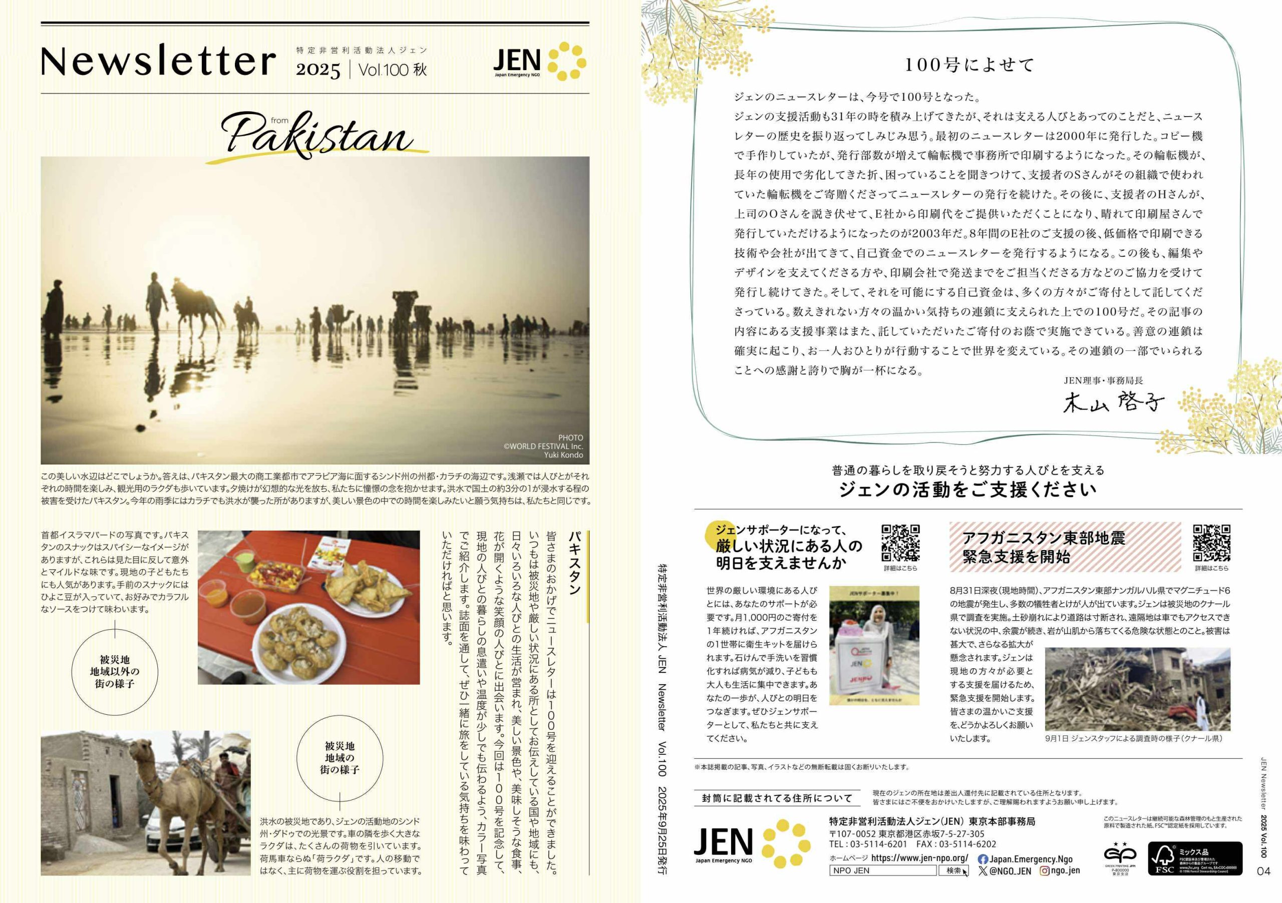 2000年から続く特定非営利活動法人ジェンのニュースレター記念すべき第100号にて、パキスタンで撮影した写真とストーリーが掲載されました。