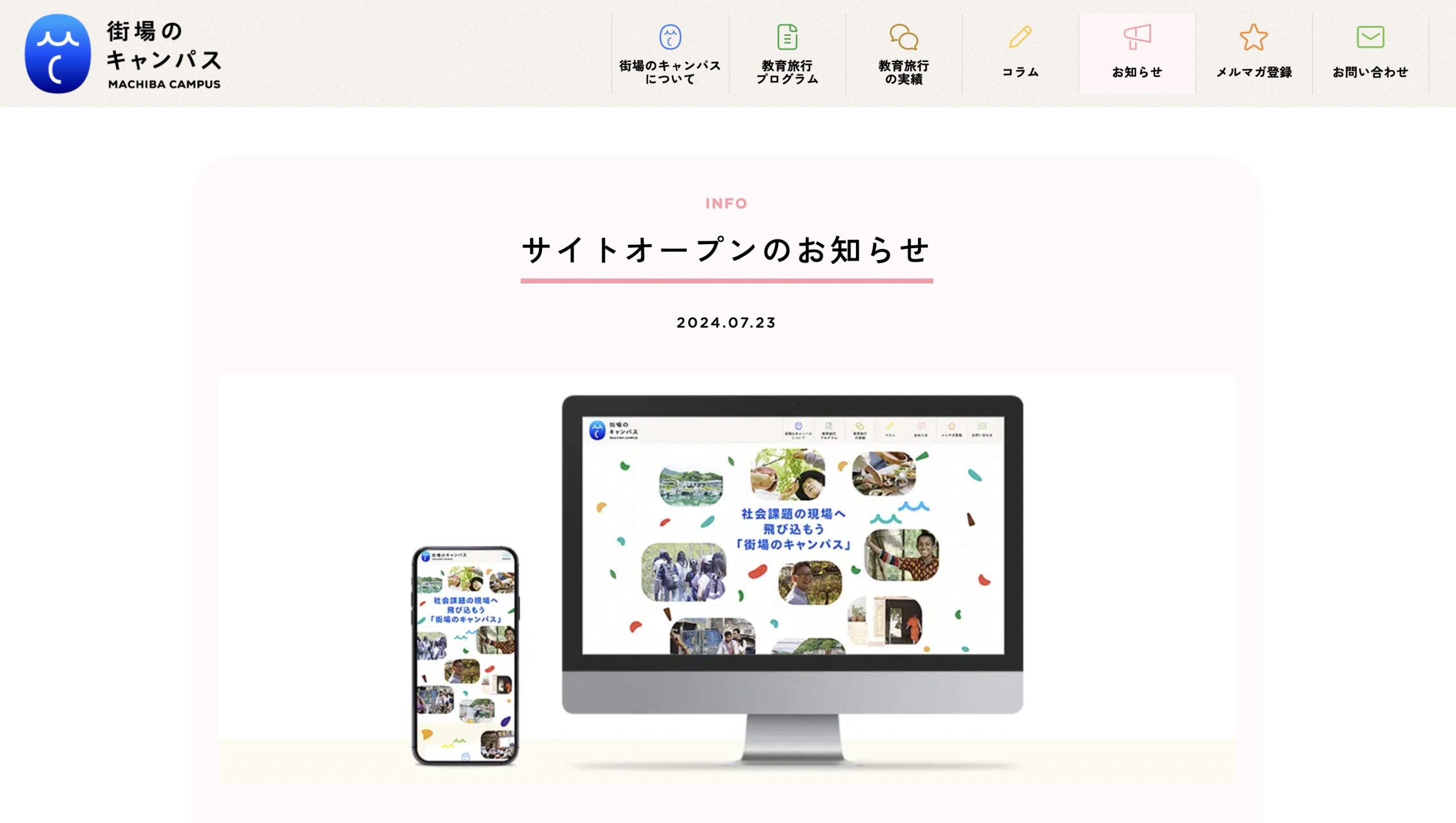 そして今回、多くの教育関係者の皆様に情報提供をするため、プラットフォームの役割をもったウェブサイト「街場のキャンパス」がオープンいたしました。