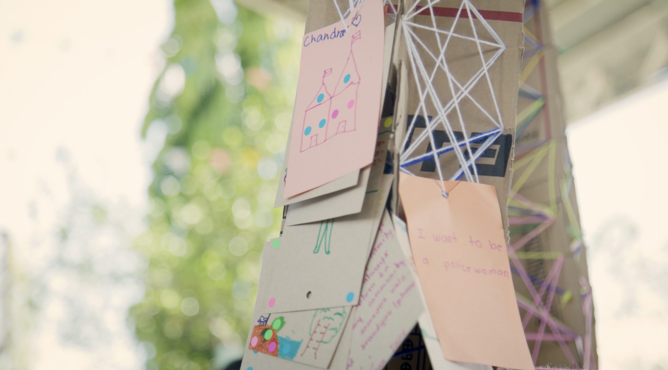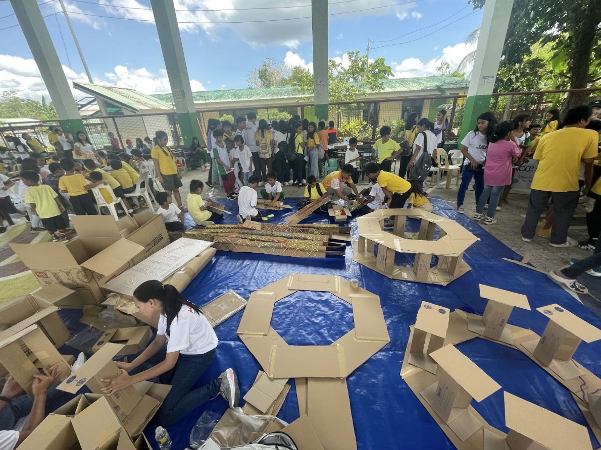 「防災とクリエイティビティ」をテーマとしたセルフビルド体験、段ボールで制作したモニュメントに子どもたちの願いを飾り付ける「Wishing Tree」、